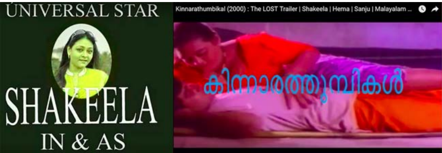Many of these films were quite impactful at their time. Two films come immediately to mind. Aadyapaapam (P. Chandrakumar, 1988) is slightly before the “real” soft-porn boom, but it opened up many doors. It was based on the Adam and Eve story and featured full frontal nudity, but this was a film that showed later soft-porn filmmakers how to take advantage of different kinds of financial schemes, censorship loopholes, and regional-language markets through dubbing practices. The other, and perhaps the most iconic example, is Kinnarathumbikal (R.J. Prasad, 2001) starring Shakeela. At one time this was also telecast on Asianet—a prominent Malayalam television channel which caused quite a furor. But that telecast itself was an event that is remembered to this day when people invoke the popularity of soft-porn cinema.
